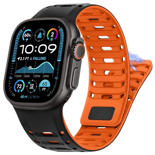 [HITZEE] スポーツ Band コンパチブル Apple Watch バンド 49mm/46mm(シリーズ11/10)/45mm/44mm/42mm(シリーズ 3),シリコン磁気メンズバンド Apple Watch Ultra 3/2/1 シリーズ 11 10 9 8 7 SE3 6 5 4 3 2 1 に対応,ブラック/オレンジ